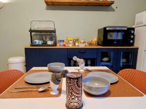 Als gast van onze chambre d’hôtes heb je toegang tot de gezamenlijke keuken. Je vindt hier een magnetron, oven, serviesgoed, koelkast en vriezer. Daarnaast is er een gezellige zithoek met spelletjes en boeken. Als gast van de chambre d’hôtes kun je vanaf mei 2026 ook genieten van de campingfaciliteiten.
